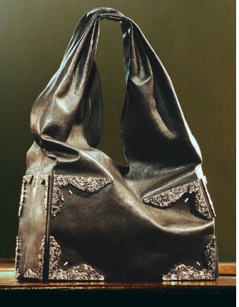 メタルディテールに施されたフローラルエンボス加工は、装飾でありながら構造的な役割も担っており、芸術性の高い仕上がりとなっている。このようなディテールが、バッグ全体の完成度を一層高めている。